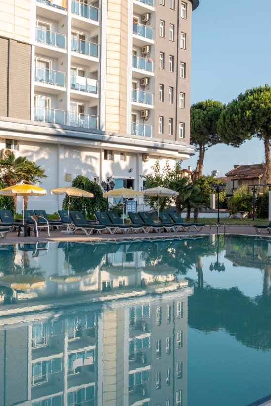 Gün boyu güneşin tadını çıkarabileceğiniz açık havuz alanımız, serinlemek ve keyifli vakit geçirmek isteyen misafirlerimiz için ideal bir ortam sunar.